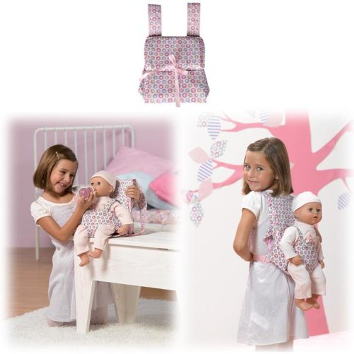 Baby Annabell 3 in 1 out n about bag. What a fab idea: a baby carrier and nappy bag in one for Baby Annabell. The nappy bag has pockets for accessories and a baby seat for feeding. Baby carrier has adjustable straps. Suitable to carry a doll of around 49cm.
